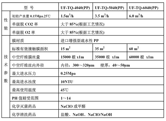 內壓式UF-TQ4040(PP) 、UF-TQ5040(PP)和UF-TQ6040(PP)膜組件膜法去除水中CO2和O2的原理圖: